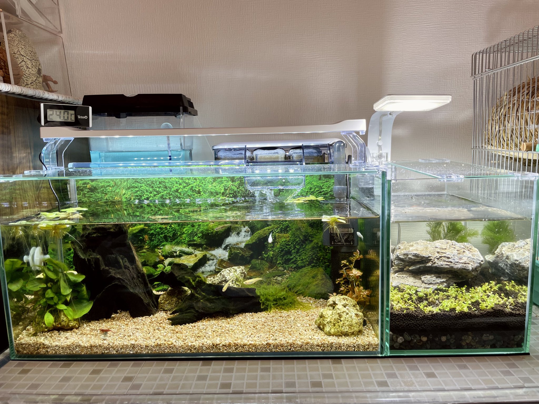 もし藻類、苔が繁殖してしまった場合はヤマトヌマエビなどを水槽に入れておけば苔を食べてくれます。